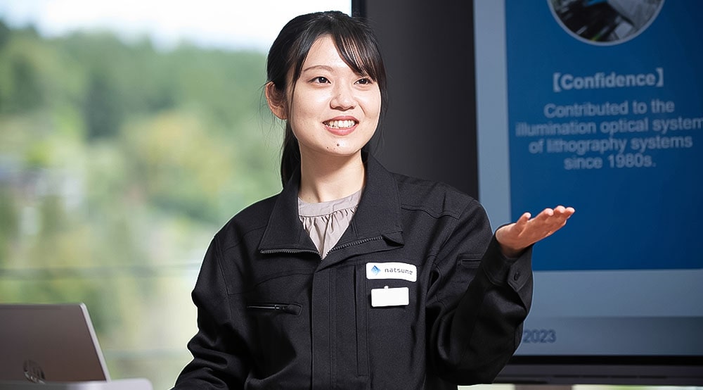 NATSUME OPTICAL CORPORATION staff members are tenaciously working on development without giving up while maximizing their imagination to support the challenge of next-generation technology.
