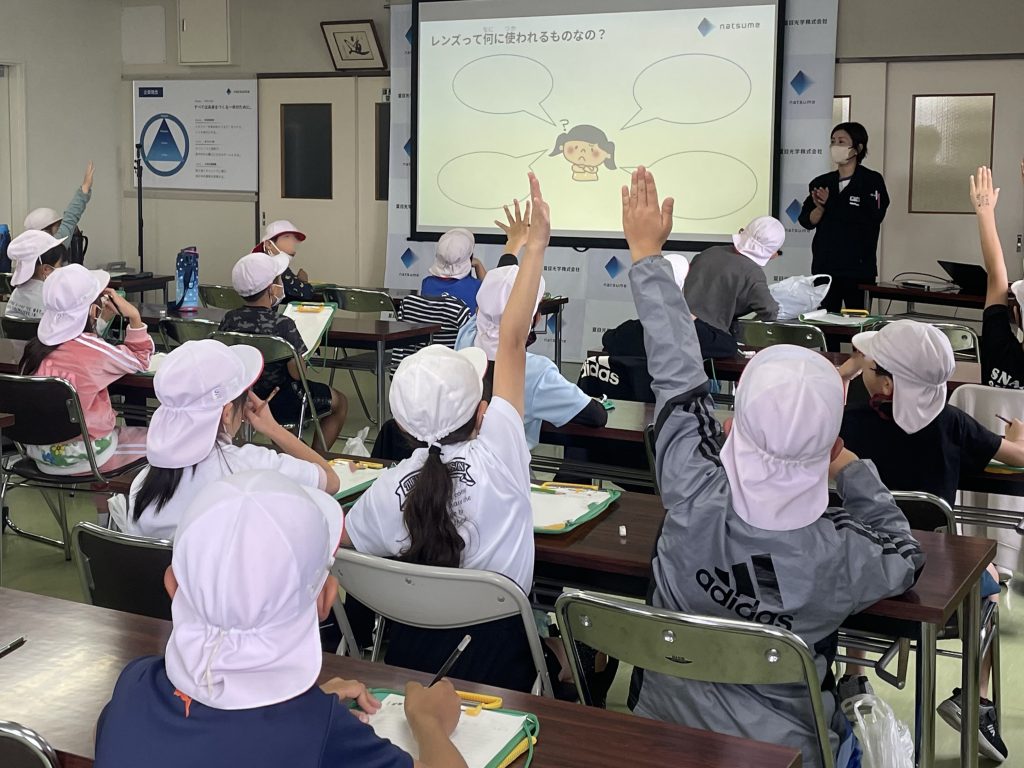 Third grade students from a local elementary school came to NATSUME OPTICAL CORPORATION for a factory tour. They were studying what is made in a factory and how it is used for their social studies class assignment entitled “Work in a Factory”.